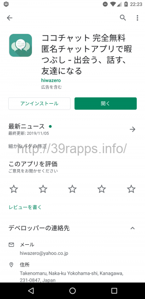 結局確認できたのは、アプリ内からリンクされている「プライバシーポリシー」から、運営会社名と思われる名前と、問い合わせ先のメールアドレスについてだけだ。
