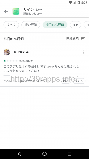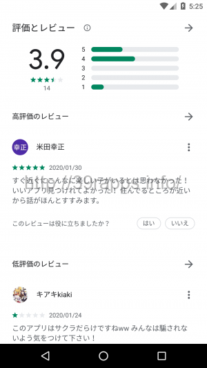 一方、批判的なコメントでは、「このアプリはサクラだらけ」というコメントが見えた。