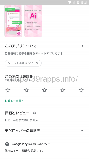 ストア説明欄もチャットができるということ以外分からないし、どうも怪しいアプリだな。
