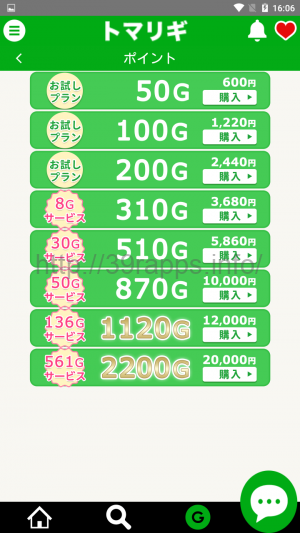 問題はそのポイント代だが、「トマリギ」のポイントの単価は、1ポイントあたり12.2円で、メールの送信は25ポイント(G)を消費する。