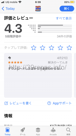 レビューは34件しか無かったのだが、星5のレビューが多い。