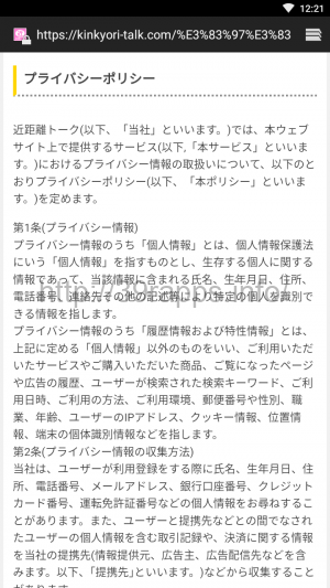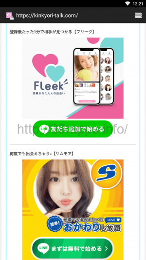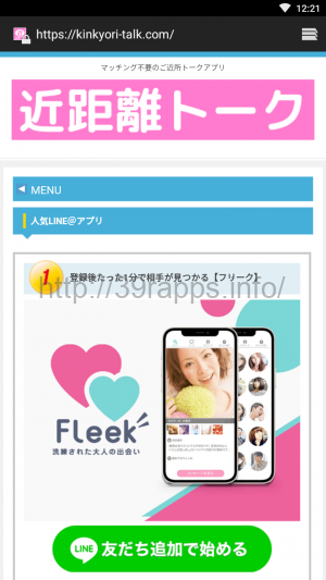 そもそも「近距離トーク」は、このアプリに登録をしてマッチング相手やトーク相手を探すといった類のアプリではなく、単に他のマッチングアプリやサービスの広告を載せたWebページを表示させるというだけのアプリだ。
