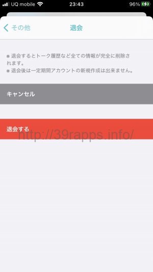 - 確認画面が出るので、「退会する」を選択