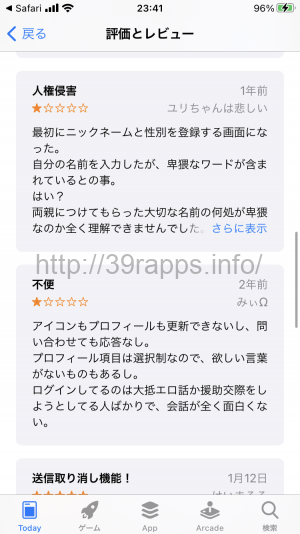 など、アプリ上の不具合に対する低評価が多いようだ。