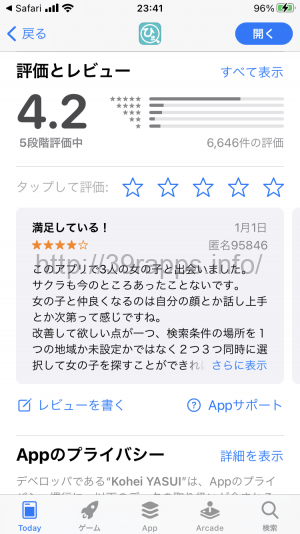 今回のアプリは、サクラらしきユーザーは特にはいなかったのだが、出会える可能性は少ないように感じた。