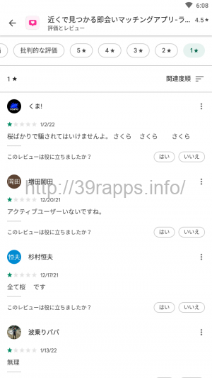 これではもしサクラがいなかったとしても、安心して利用できるアプリではなさそうだな…。