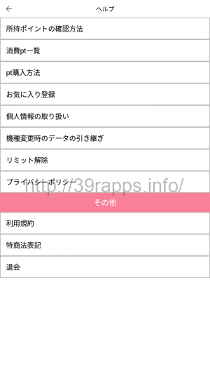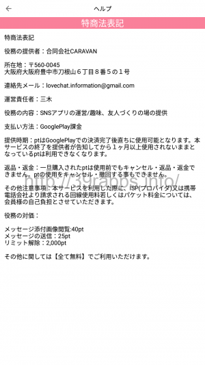 アプリ内からは、特商法表記が確認できる。