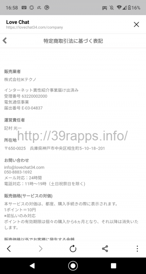 - メールアドレス:info@lovechat34.com