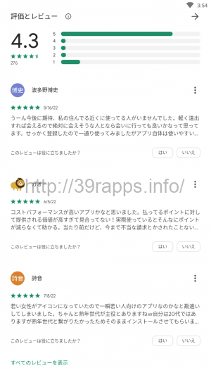 Playストアでの星評価の平均は4.3となかなかに高めだ。