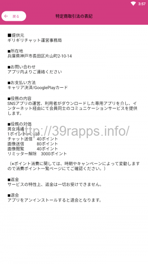アプリ内「特定商取引法の表記」によれば、「提供元」は「ギリギリチャット運営事務局」だ。