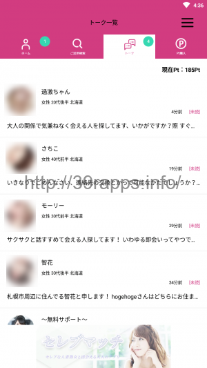 この手のアプリにおいて、やたらとかわいい女性の写真ばかりが掲載されている場合はサクラを疑ったほうがいい。