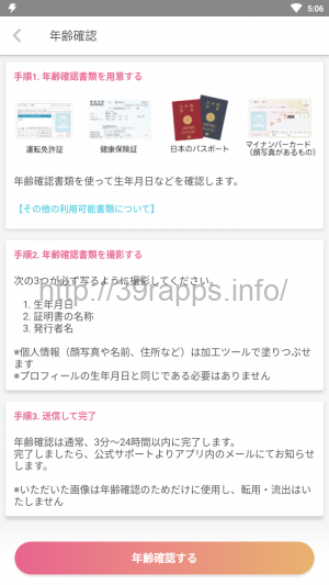 一応年齢認証の機能として免許証などの登録画面はあるものの、ユーザー登録のところで自己申告の年齢を入力だけで利用することができてしまった。