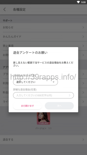 「YUELAO(ユエラオ)」にはサクラがいることがわかったところで、アプリの退会方法について確認しておこう。