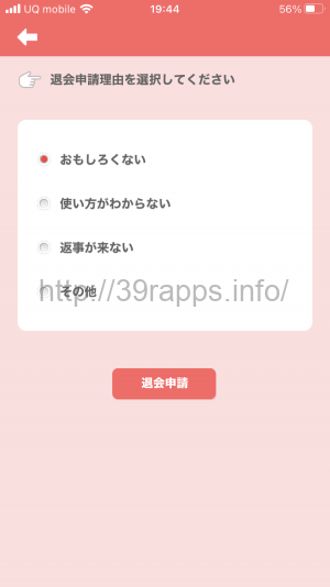 - 退会理由を選択して「退会申請」を押すと退会が完了する