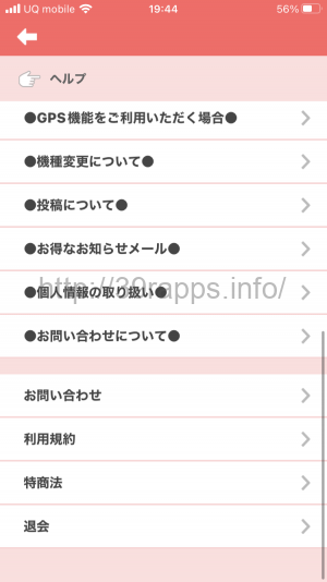 - ヘルプのページの一番下「退会」を選択
