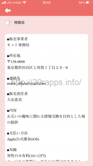 このアプリは”無料で登録&即会い可”とストア説明欄に書かれていて、インターネット異性紹介事業に該当するだろう。