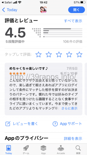 レビュー内容としては「こんなにサクサク出会えるとは思っていなかった」と高評価である。