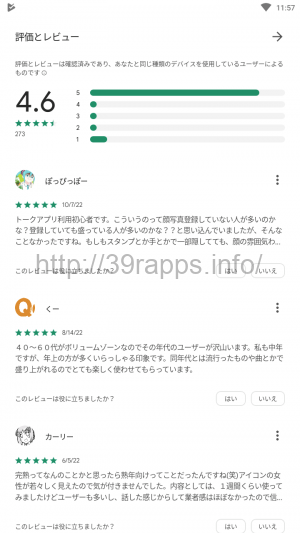 評価数のほうは273件と、この手のアプリでは少なめだな。