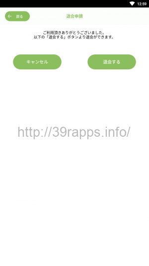 そうすると、退会に関する確認画面が表示されるので、ここで再度「退会する」のボタンをタップすれば退会申請は完了だ。