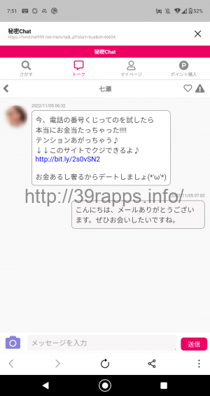しかし実際に利用してみると、高すぎるポイント代消費や、出会いにはまったく関わりのないメッセージなど、ただのサクラサイトであることがはっきりしてしまった。