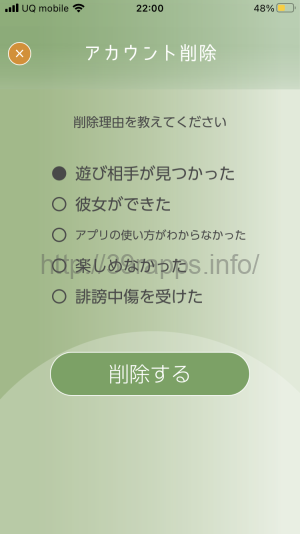 サクラが判明した以上、こんなアプリにもう用はないので、さっさと退会してしまおう。