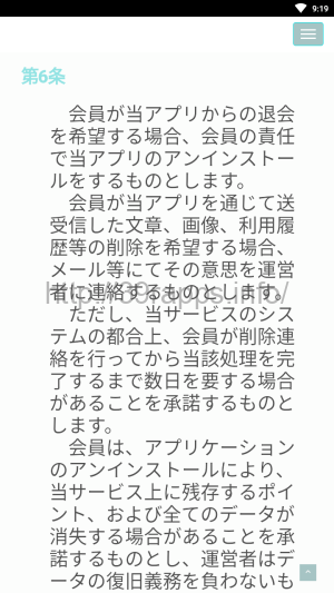 利用規約を確認してみると、どうやらアプリからの退会には、アプリのアンインストールをすれば足りるようだ。