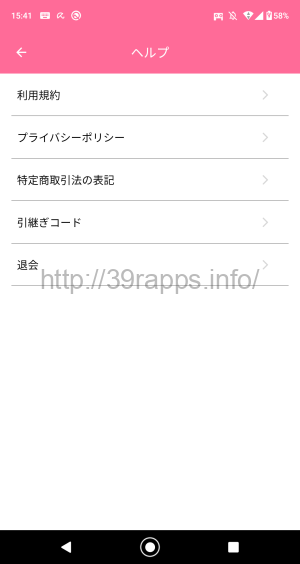 アプリの右下にある「マイメニュー」から、「ヘルプ」のメニューに入る。
