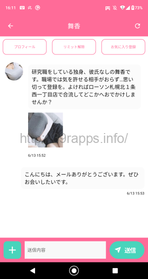 このアプリのように、法人名を隠して「○○運営事務局」などとしているようなアプリは、サクラを多く抱える悪質アプリであるケースが多い。