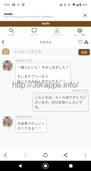 コンビニアイスならワッフルコーンのバニラソフトが大正義の大統領、今回のサクラ鑑定は「Vanilla(バニラ)」というLINE経由の出会い系だ。