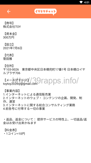 アプリ内の特定商取引法に関する表示によれば、「商号」は「株式会社TOY」とある。