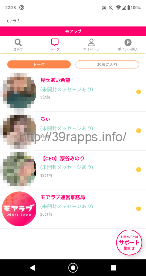 Hのときに「もっと」と言われると大興奮する大統領、今回のサクラ調査は「モアラブ」というLINE経由の出会い系だ。