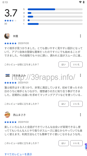「トマトーク」のPlayストアでの星評価の平均は3.7と、中間ぐらいといったところだろうか。