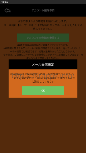 - [info@koiju9-cafe.com]へ退会の旨をメールする