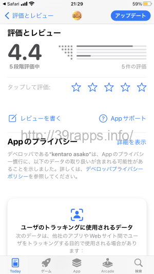 レビューはまだ5件しかなく、レビュー内容も公開されていなかった。