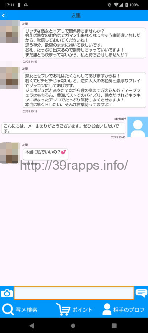 それも、1通目から男性なら思わず返信したくなるような性的なメッセージを釣りに使ってくるあたり、典型的なサクラの手口だな。