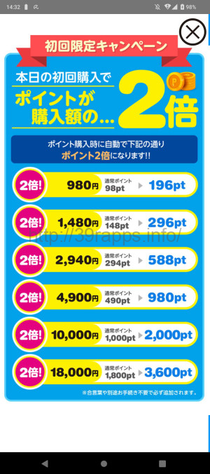 まず1ポイントあたりの料金はキャンペーンを除くと10円、メールの送信には25ポイントを消費する。