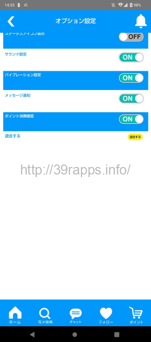 アプリメイン画面の左下にある「ホーム」の画面から「設定」に進み、その中にある「退会する」をタップする。