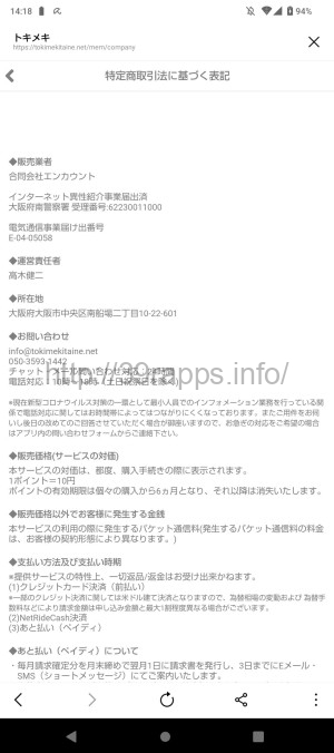 サイト内の「特定商取引法に基づく表記」によれば、「販売業者」の欄には「合同会社エンカウント」とある。