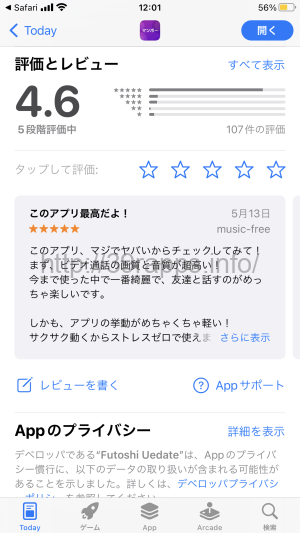 Appstoreの評価4.6となかなかで、107件と数もそこそこある。