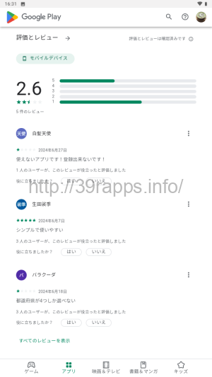 「Coming(カミング)」のPlayストアでの星評価は2.6と、かなり低めだ。