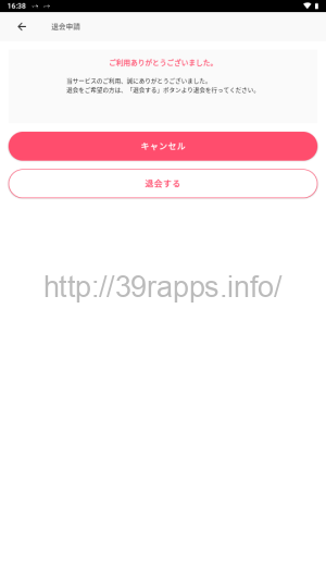 そうすると退会に関する確認画面が表示されるため、「退会する」を選択すれば退会申請は完了だ。