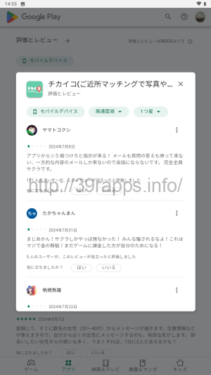 Playストアでの「チカイコ」の星評価の平均は4.2と、なかなかの高評価だな。