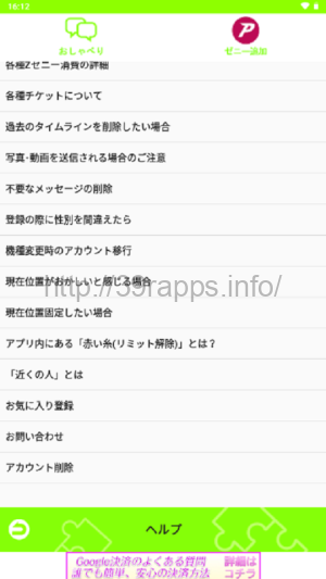マイメニューから「各種設定」「ヘルプ」へと進み、画面下にある「アカウント削除」をタップする。