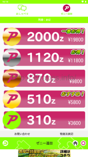 「U」ではどうだったかというと、まず1ポイント(ゼニー)あたりの料金は10円で、メールの送信には25ポイントがかかる。
