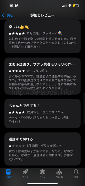 ビデオ通話がちゃんとできると書いている人もいれば、サクラ業者モリモリ、通話がすぐ切れると書いている人もいる。
