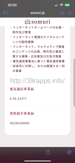 特商法の記載があり、異性紹介事業届けも出している。
