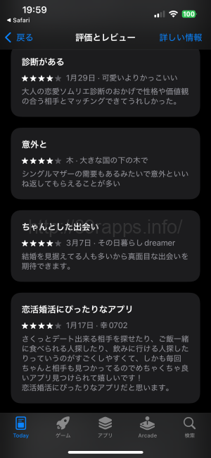 レビュー内容を見る限り、運営の対応がしっかりしていて、さくっとデートできる相手を探せるようである。