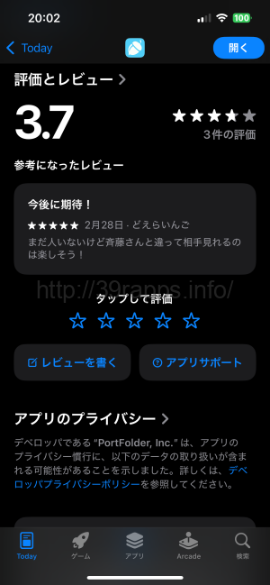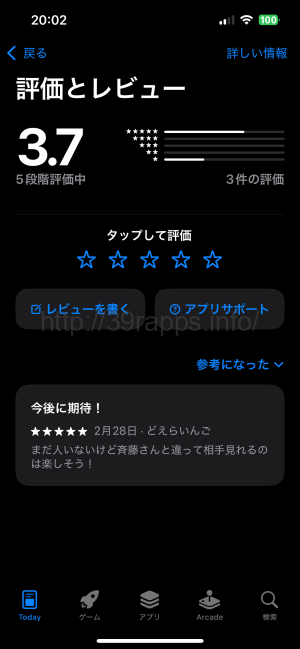 最近リリースされたばかりのアプリであるため、レビューはまだ3件しかなかった。