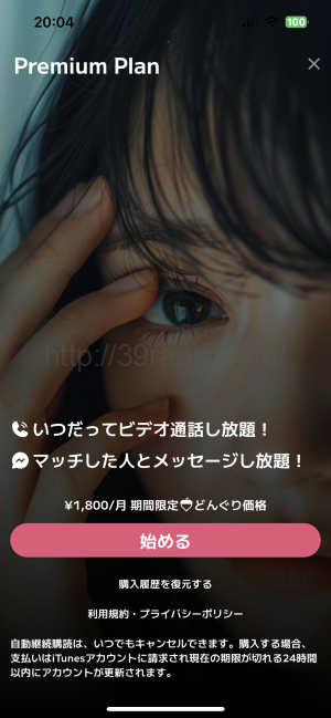 初回の90秒間のビデオ通話は無料だが、その後、同じ人とメッセージのやり取りや通話をしたい場合は月額1800円かかる。