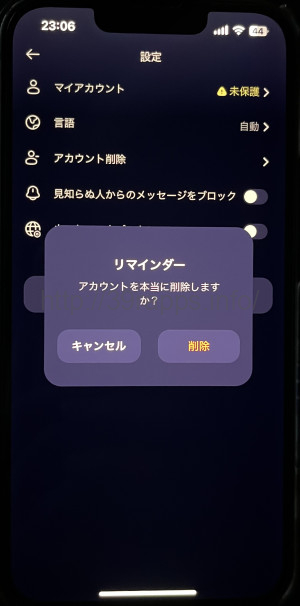 - 確認画面が出るので「削除」を押す